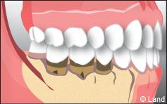 La dent est articulée avec l’os alvéolaire par le ligament alvéolo-dentaire. Il agit comme un amortisseur entre la dent et l’os. Le cément est une couche mince recouvrant la racine et/ou les ligaments parodontaux rattachant la racine à l’os.
