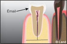 La partie la plus externe de la couronne, l’émail, est composée principalement d’éléments minéraux, ce qui lui confère dureté et solidité.
